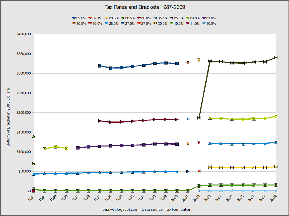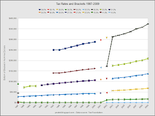 Here's the same chart using constant dollars. The brackets have been essentially level since the late 1980s.